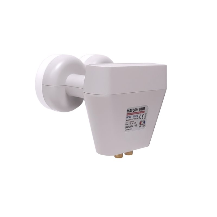 Jednou z hlavních předností tohoto LNB je kvalitní provedení s zlacenými F konektory, které zajišťují lepší vodivost, vyšší odolnost proti korozi a maximální spolehlivost připojení. Díky tomu je Mascom Monoblok Twin MCM4T01HD vhodný i pro dlouhodobé použití v náročných podmínkách, ať už jde o silné sluneční záření, déšť nebo mráz.