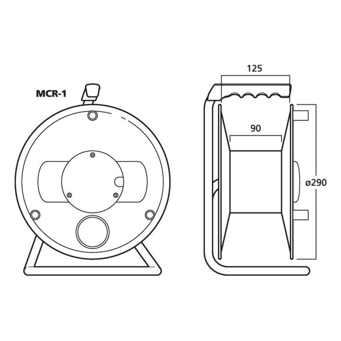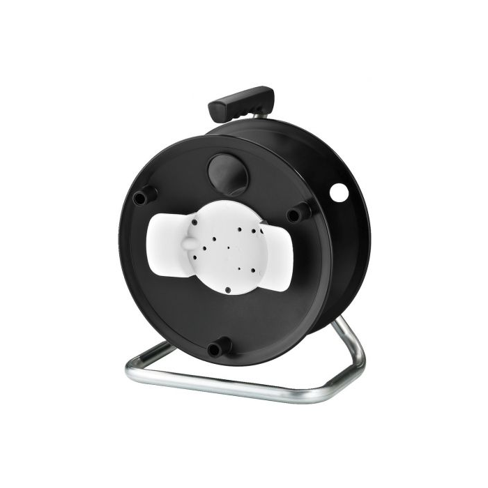 Description: empty cable reel Colour: black Material: steel tube base, metal reel Suitable for: cable lengths up to 100 m Dimensions: 290 x 365 x 190 mm Weight: 1.1 kg Packing unit: 1 Packaging dimensions (W x H x L): 0.2 x 0.37 x 0.29 m Gross weight: 1.396 kg Net weight: 1.162 kg