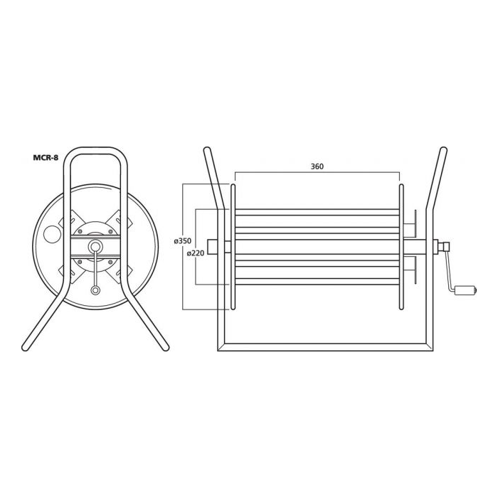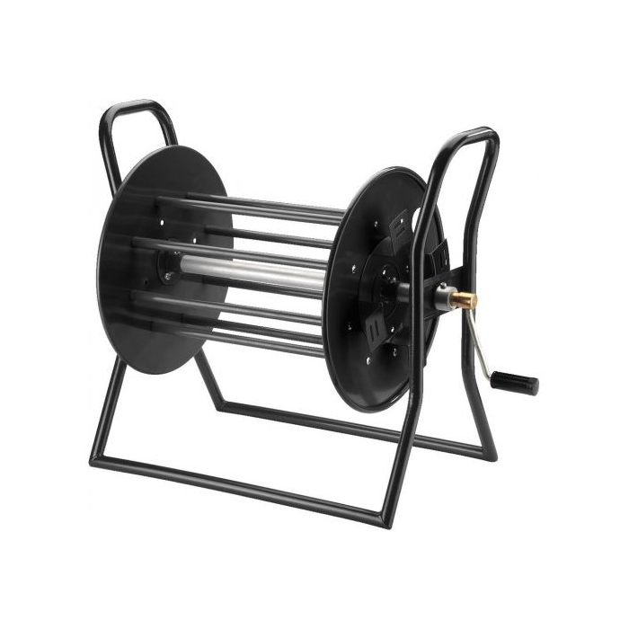 Description: empty cable reel Colour: black Material: steel tube base, metal reel Suitable for: cable lengths up to 200 m Admiss. ambient temp.: 0-40 °C Dimensions: 580 x 510 x 350 mm Weight: 6.5 kg Other features: crank handle Packing unit: 1 Packaging dimensions (W x H x L): 0.37 x 0.54 x 0.6 m Gross weight: 9.24 kg Net weight: 7.66 kg