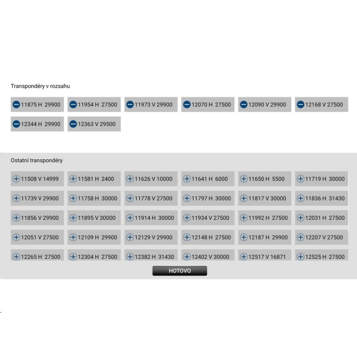 • Identifikace kabelů: LNB Quattro (kontrola transpondérů)