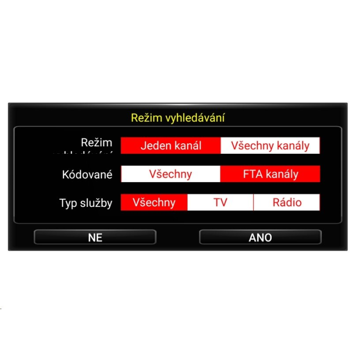 • Režim vyhledávání TV: Automatické, Blind Scan, Manuální