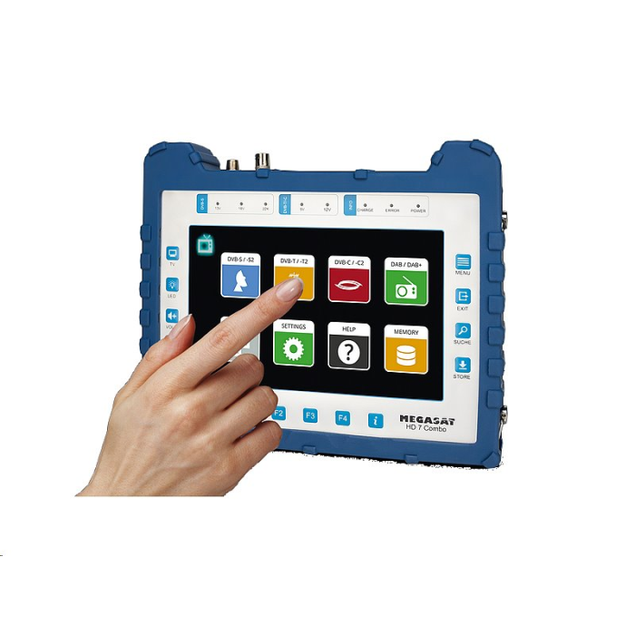 Megasat HD 7 Combo umožňuje měření všech přijímaných signálů (satelitní, kabelové, pozemní, DAB +) se zobrazením na dotykovém displeji s úhlopříčkou 8,9 palců.