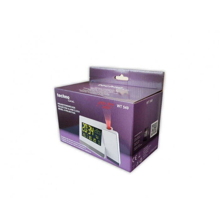 Meteorologická stanice s budíkem a projekcí času a vnější / vnitřní teploty, předpovědí počasí a barevným inverzním displejem s možností volby nastavení zobrazení až z 256 barev.