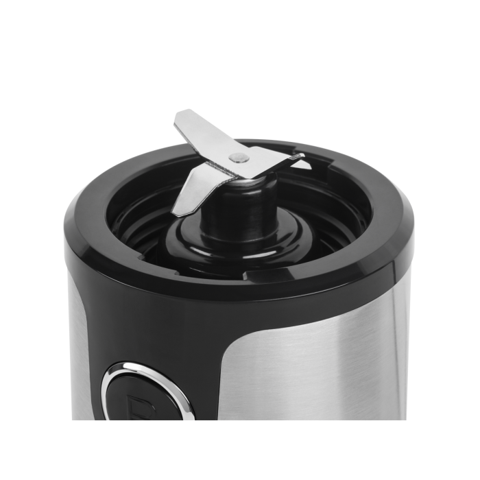 Kompaktní 300W mixér s dvěma tritanovými nádobami, 20 000 ot./min., nerezové tělo, ideální pro smoothie a nápoje s ledem.