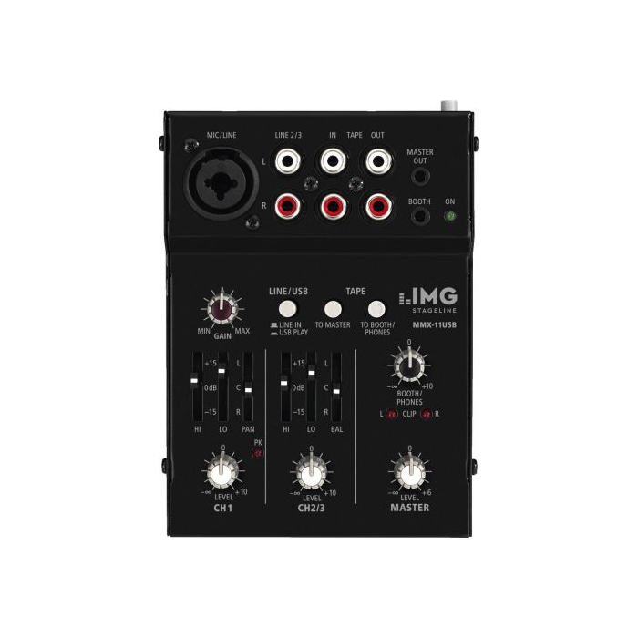 - 1 mono vstupný kanál s ovládaním gain-u, 2 pásmový ekvalizér and pan pot control, LED kontrolka
