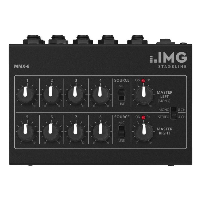 Input channels: 8 Number of mix/mono: 8 No. of stereo: 4 Mic input: 5 mV, 8 x 6.3 mm jack Line input: 50 mV, 8 x 6.3 mm jack Master output: 100 mV, 2 x 6.3 mm jack Frequency range: 20-20,000 Hz THD: < 0.4% S/N ratio: 55 dB Power supply: 9 V battery or via optional power supply PSS-600E Admiss. ambient temp.: 0-40 °C Dimensions: 150 x 68 x 115 mm Width: 150 mm Height: 68 mm Depth: 115 mm Weight: 550 g Packaging dimensions (W x H x L): 0.12 x 0.085 x 0.16 m Gross weight: 0.643 kg Net weight: 0.551 kg