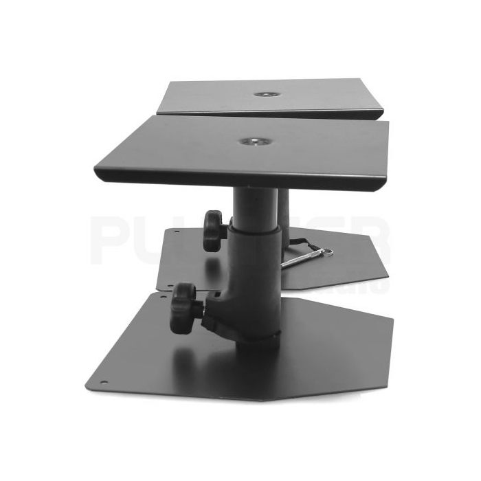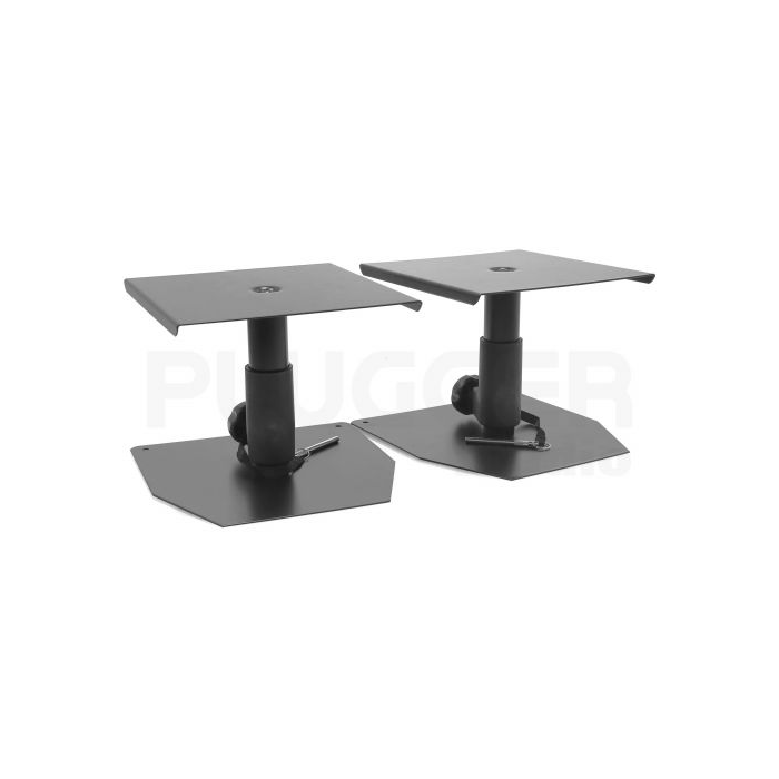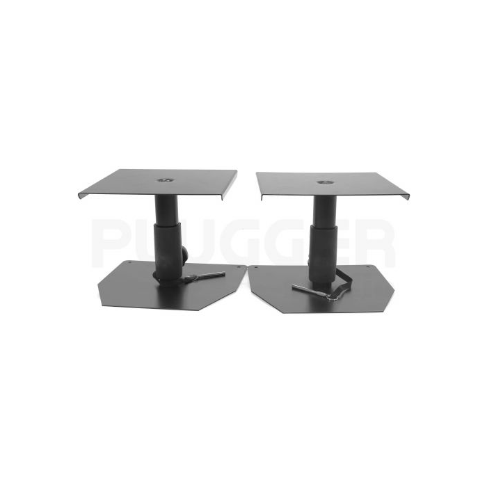The French brand Plugger studio offers a range of products dedicated to recording and listening, with unbeatable value for money, to support you in all your projects. Plugger studio's MS2 Mini studio loudspeaker stands are durably constructed and designed to support monitoring loudspeakers in the optimum listening position in professional and home recording studios. Each stand is made from steel tubing and two 23 x 23 cm steel plates. An ergonomic locking knob secures each stand, while a safety pin can be inserted into one of the pre-drilled holes to allow precise adjustment of the height of each speaker between 230 and 290 mm. Features : - Pair of stands for monitoring or other loudspeakers - For monitoring, hi-fi or home cinema - Solid metal stand with heavy base - Height adjustable from 230 to 290 mm - Tray dimensions: 23 x 23 cm - Base dimensions: 250 x 250 mm - Maximum load: 25 kg - Safety pin - Black finish