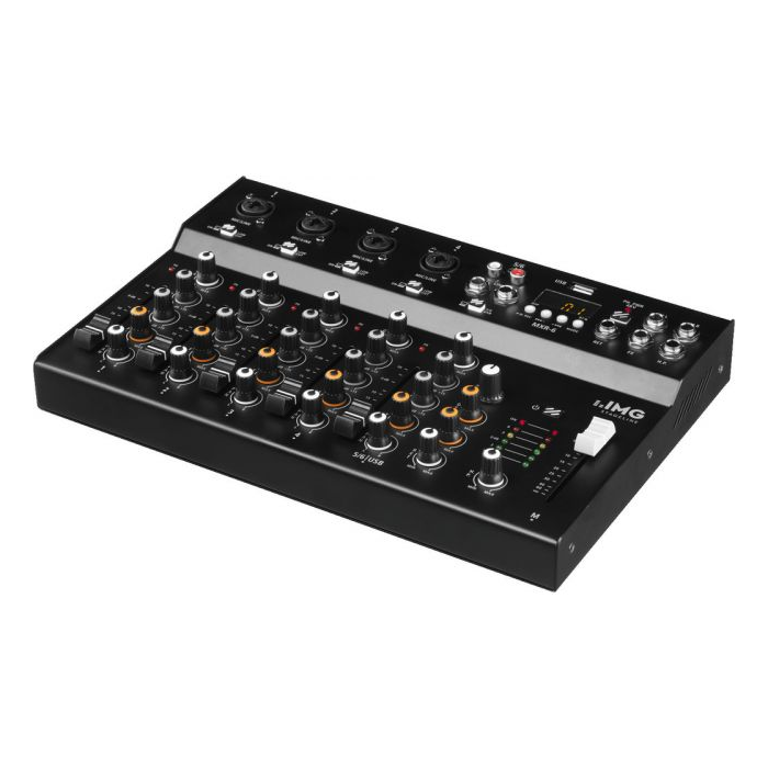 4 mono vstupné kanály s gain ovládaním, 2-pásmový ekvalizír a pan pot