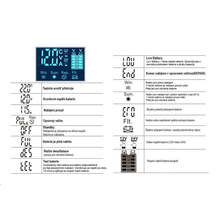 • Rozsah kapacity baterií: 6Ah – 200Ah
