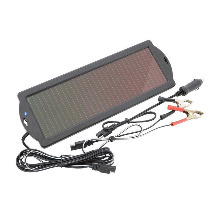 Ideální pro použití při delším odstavení vozidla, např. na dovolené či v garáži. Jednoduše se položí za čelní sklo a zapojí se do zásuvky autozapalovače 12 V, nebo pomocí klipsů přímo na autobaterii.