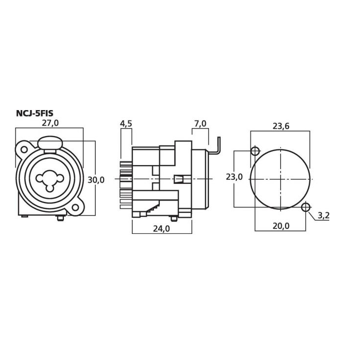 Description: mono combo jack Type: NEUTRIK panel jack Quantity: 1 Colour/colour coding: black Connection: 6.3 mm mono jack and 3-pole XLR jack Mono: yes Material: metal Admiss. ambient temp.: -30 °C to +80 °C Weight: 15 g Other features: contact rating: ˜ 125 V/7.5 VA
