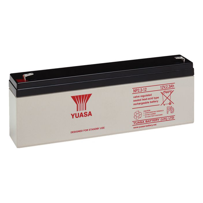 Rated voltage: 12 V Capacity: 2.3 Ah Technology: lead acid Quantity: 1 VdS No.: G101139 Dimensions: 178 x 64 x 34 mm Weight: 0.95 kg Connections: push-on terminal 4.8 mm(Faston 187) Other features: SBPO, CO, 6-9 years