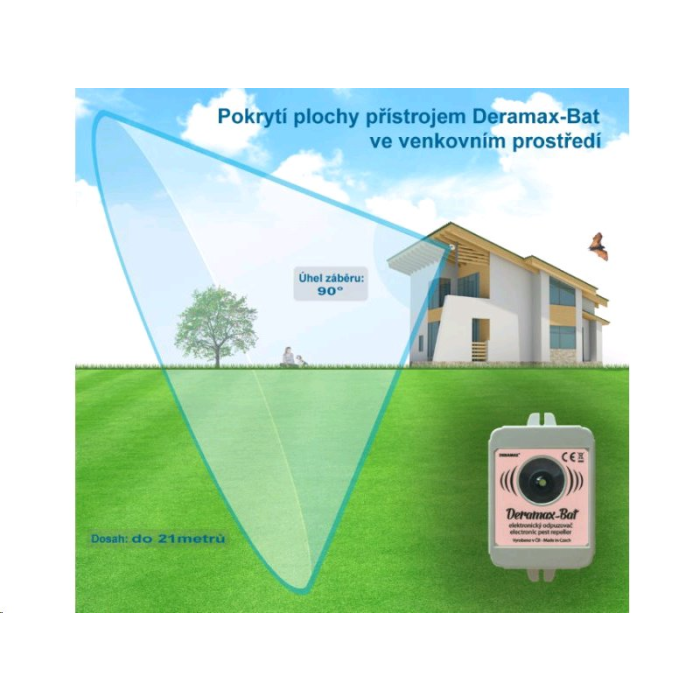 Plašič Deramax-Bat generuje specifické ultrazvukové signály, které jsou pro netopýry nepříjemné, takže po krátkém čase chráněný prostor opouští. Automatická změna kmitočtu zajištuje, že si na signál nezvyknou.