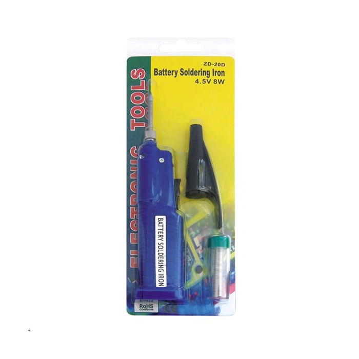 Malá a kompaktní pájka ZD-20D je plně funkční na napájení ze tří tužkových baterií 1,5V/AA po dobu cca1hod. Hrot se plně nahřeje do 15 sekund a má malou tepelnou setrvačnost, takže se ochladí za méně než 30 sekund. Páječka je vhodná pro pájení drobné elektroniky v místech, kde není dostupné napětí 230V/AC.
