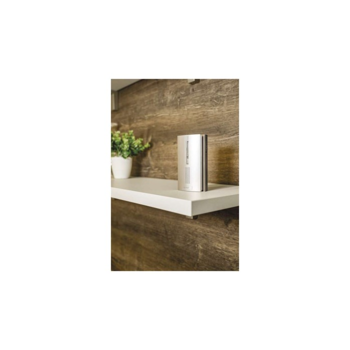 Bezdrátový přijímač P5763R má stejně jako zvonky ze sady P5760 a P5763 integrovaný opakovač signálu. Na jednu sadu (tlačítko + zvonek) napojíte neomezené množství těchto přijímačů, čímž si vytvoříte domovní zvonek s nekonečným dosahem.