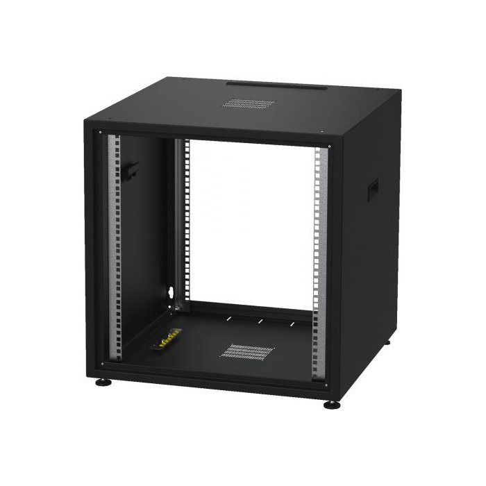 Intended use/capacity: studio rack Size: 482 mm (19") Rack units, RU: 12 Colour: black Version: cabinet body Material: sheet steel Castors: 4 levelling feet, 1 set of castors Protective class: IP20 acc. to EN 60529 Usable depth: 533 mm Outside dimensions: 600 x 604 x 600 mm Width: 600 mm Height: 604 mm Depth: 600 mm Max. load capacity: 30 kg Weight: 20 kg