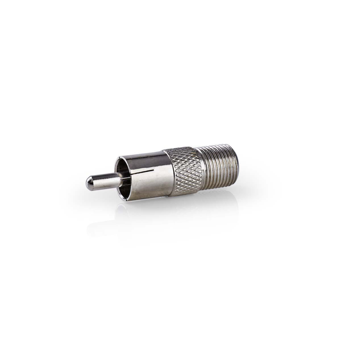 Redukce F zásuvka – CINCH konektor, kovová konstrukce, poniklovaný povrch pro stabilní signál, kompaktní rozměry, snadná instalace.