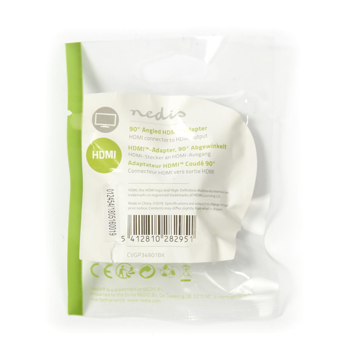 Redukce HDMI-HDMI úhlová 90° NEDIS CVGP34901BK