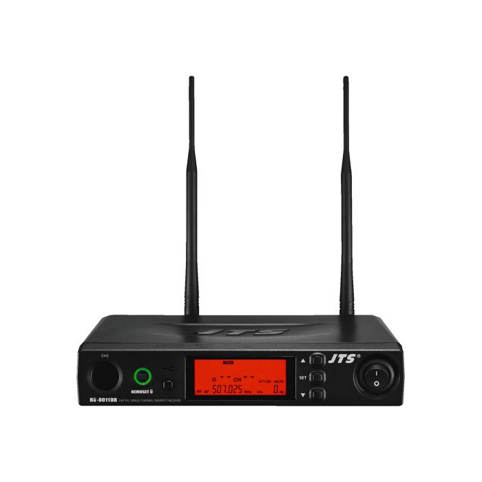 Podsvietený displej so zobrazovaním stavu napr. skupiny kanálov/kanálu, frekvencie, batérie, antény A/B, úrovne príjmu RF, úrovne AF audio
