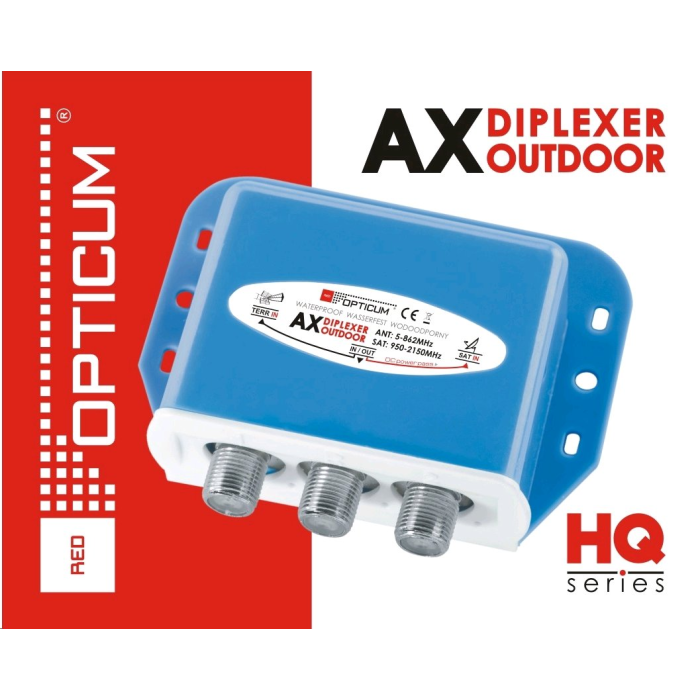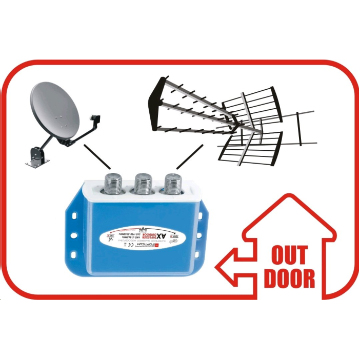 Venkovní slučovač satelitního a televizního signálu pro přivedení signálů jedním kabelem do účastnické zásuvky. Frekvenční rozsah pro TV 5-862 MHz a pro SAT 950-2150 MHz.