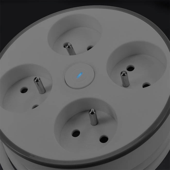 • Predlžovací prívod s kruhovým zásuvkovým poľom pre domácnosť i kanceláriu. Kábel je možné navinúť na podstavec na uschovanie nevyužitej dĺžky alebo navinúť celý pri skladovaní. Podstavec zaisťuje stabilitu a je možné ho pripevniť do pracovnej dosky alebo na stenu vďaka montážnemu úchytu. Podsvietený vypínač ovláda všetky zásuvky.