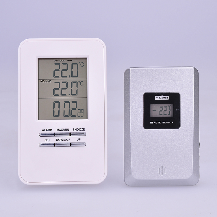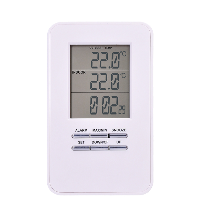 Digitálny teplomer na meranie vnútornej teploty (-9 °C až +50 °C) a vonkajšej teploty (-50 °C až +70 °C). Pamäť minimálnych a maximálnych teplôt na monitorovanie zmien. Súčasťou dodávky je 1 bezdrôtový snímač. Funkcia času a budíka na pohodlné používanie. Napájanie: hlavná jednotka 2x batérie AAA (nie sú súčasťou balenia), snímač 2x batérie AAA (nie sú súčasťou balenia). biela farba pre moderný vzhľad.