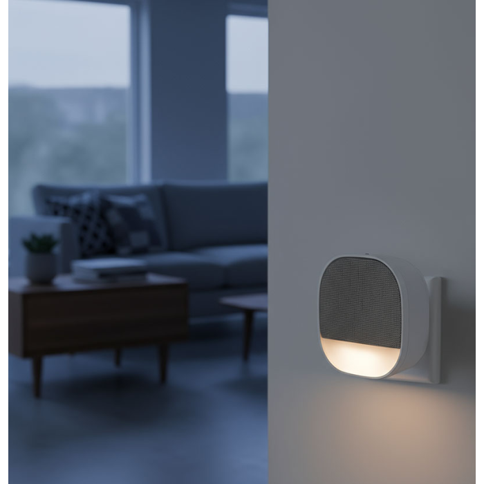 Tento model kombinuje funkciu klasického bezdrôtového zvončeka s decentným nočným osvetlením. Integrované svetielko svieti teplou bielou farbou, vďaka zaoblenému tvaru krytky neoslňuje a rovnomerne ožaruje okolitý priestor. O zapnutie sa stará súmrakový senzor, ktorý reaguje na pokles okolitého svetla. Nočný režim sa dá ľahko vypnúť priamo tlačidlom na zvončeku.