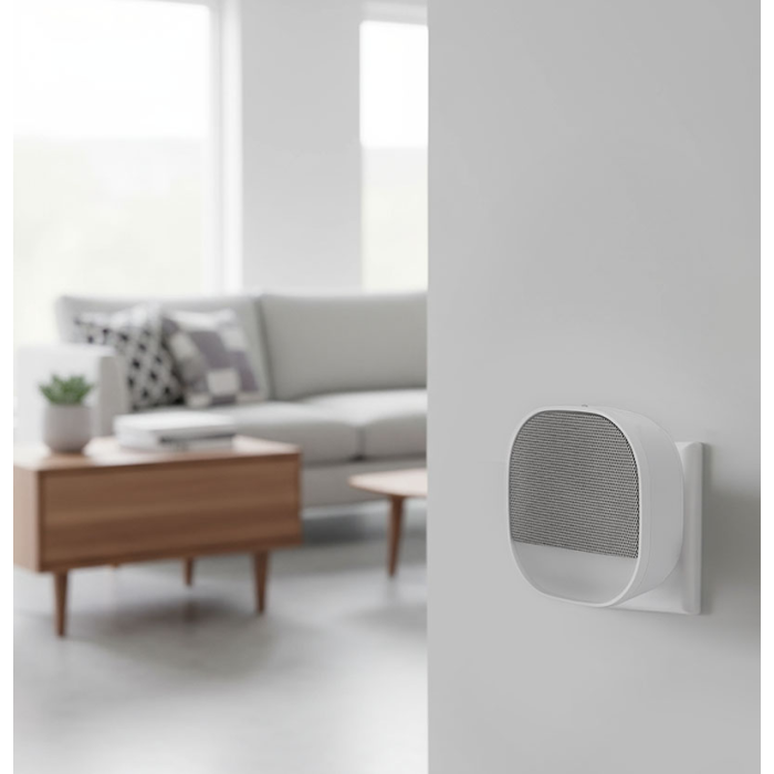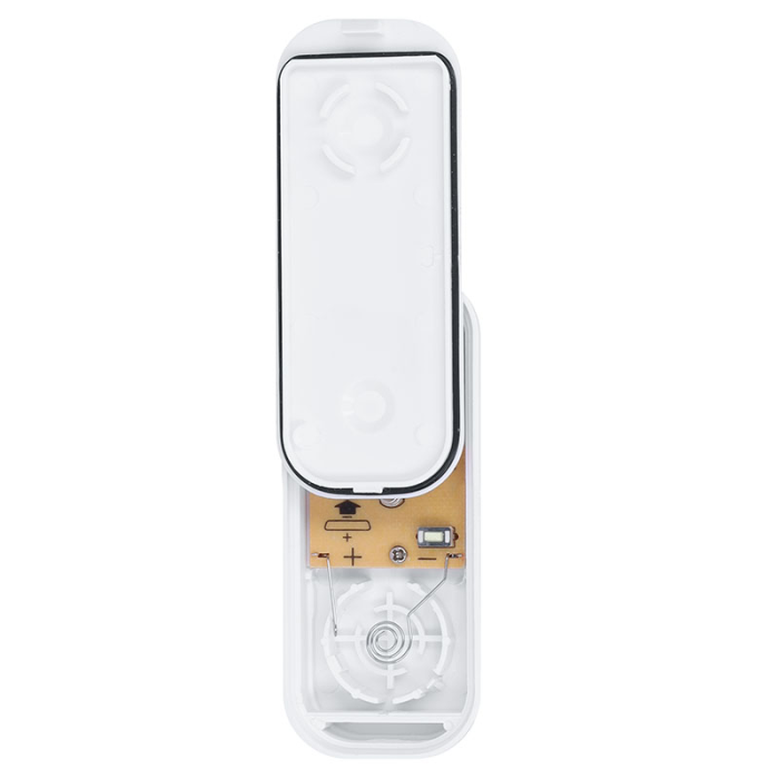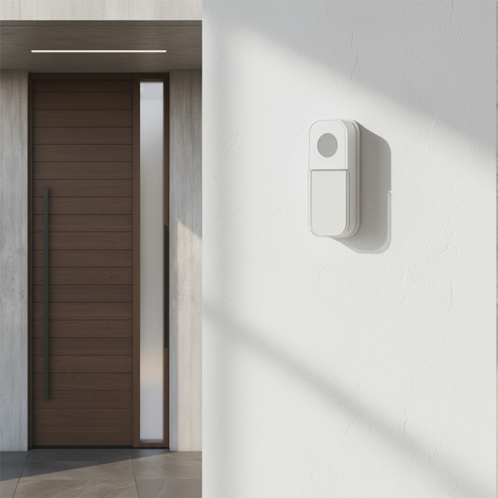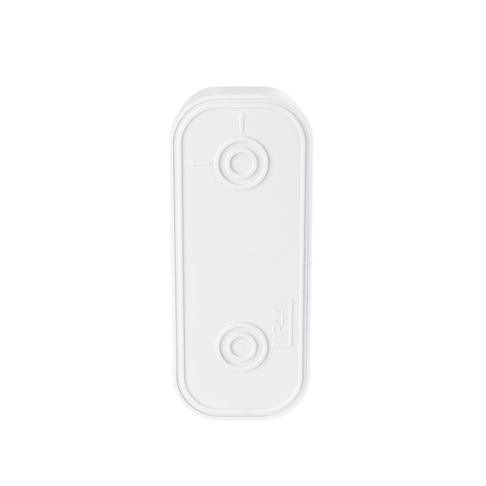 Čelná strana zvončeka s látkovým povrchom pôsobí mäkko aj v moderných interiéroch. Zaoblené línie a čisté biele prevedenie ladí s rôznymi typmi miestností. Tlačidlo má priehľadnú krytku na menovku a vďaka ochrane IP44 bez problémov odolá vonkajšiemu použitiu. Uchytenie je jednoduché – pomocou samolepiacej podložky alebo skrutiek.