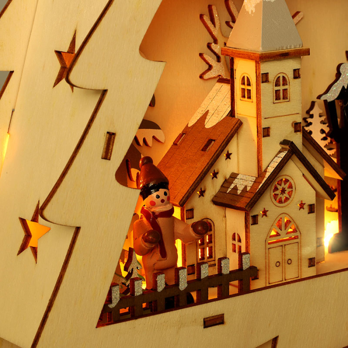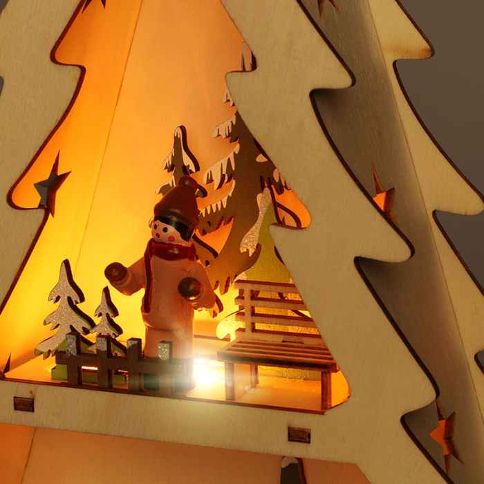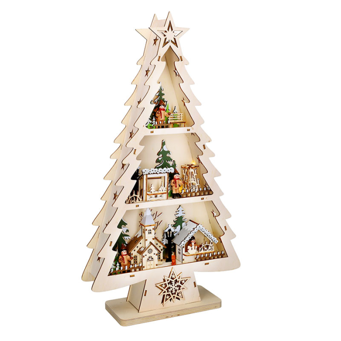 Drevený vianočný stromček s LED osvetlením pre útulnú atmosféru