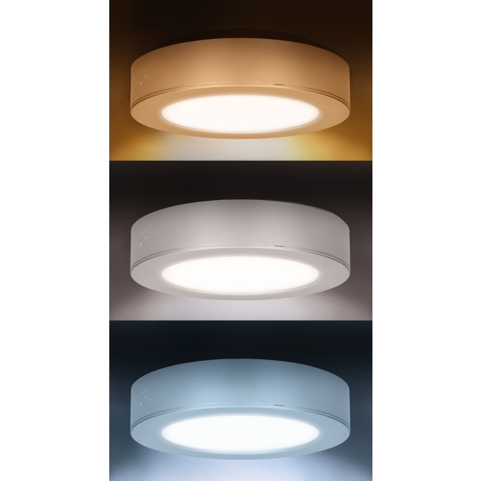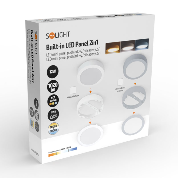 Špeciálny LED zdroj s prepínačom umožňuje nastaviť teplotu svetla podľa aktuálnej potreby – od teplej (3000 K), cez neutrálnu (4000 K), až po studenú bielu (6000 K). S výkonom 12 W a svetelným tokom 1020 lm poskytuje dostatok svetla pre každodenné činnosti. Panel je vybavený krytím IP54, čo zaručuje odolnosť proti striekajúcej vode a umožňuje jeho použitie aj v kúpeľniach. Dlhá životnosť LED až 20 000 hodín, široký uhol svietenia 160° a index podania farieb Ra >80 garantujú kvalitné a príjemné osvetlenie v každej miestnosti.