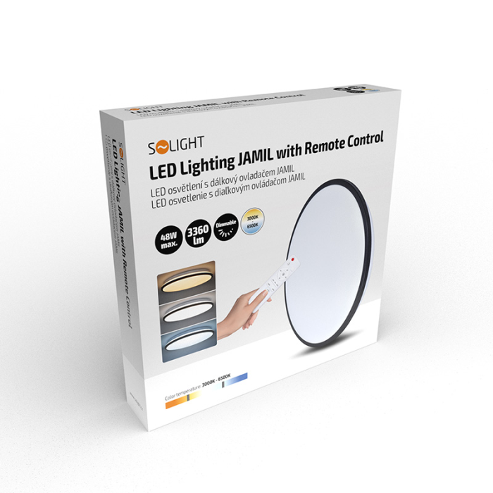 Súčasťou balenia je praktický diaľkový ovládač, ktorým možno svetlo plynulo stmievať, meniť teplotu chromatickosti v rozsahu 3000 K – 6500 K alebo vyberať z prednastavených módov svietenia. To umožňuje ľahko prispôsobiť atmosféru miestnosti aktuálnej nálade či činnosti – od teplého relaxačného svetla až po studené biele svetlo vhodné na prácu. Osvetlenie Jamil je navrhnuté pre napätie 220–240 V AC a prevádzkové teploty od -20 °C do 50 °C, čo zaisťuje spoľahlivú prevádzku v rôznych podmienkach. Rozmery 395 x 70 mm umožňujú jednoduchú inštaláciu aj v menších priestoroch.