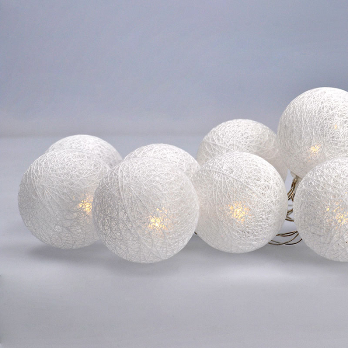 LED reťaz s bavlnenými guľami pre vianočnú atmosféru
