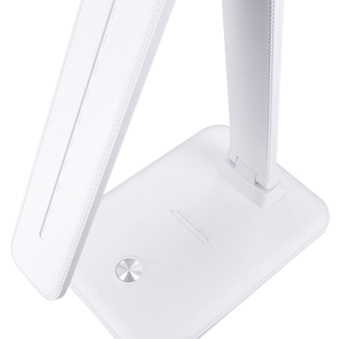 Kombinácia kvalitných materiálov ABS a PS zaručuje dlhú životnosť a odolnosť lampičky, zatiaľ čo čisto biela farba a moderný tvar skvele zapadnú do každého interiéru. Kompaktné rozmery cca 330 x 120 x 300 mm a napájací kábel s dĺžkou 140 cm umožňujú jednoduché umiestnenie na akýkoľvek stôl. Lampička dosahuje maximálny svetelný tok 490 lm pri príkone 10 W (pre 4500 K) a index podania farieb CRI > 80 zabezpečí verné zobrazenie farieb. Energetická trieda G zodpovedá súčasným štandardom pre LED osvetlenie. LED zdroj je integrovaný a nie je možné ho meniť.