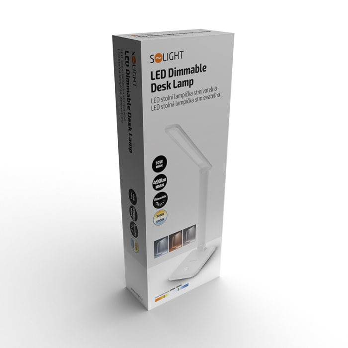 Solight LED stolná lampička 10W, 490lm, zmena CCT, stmievanie, biela