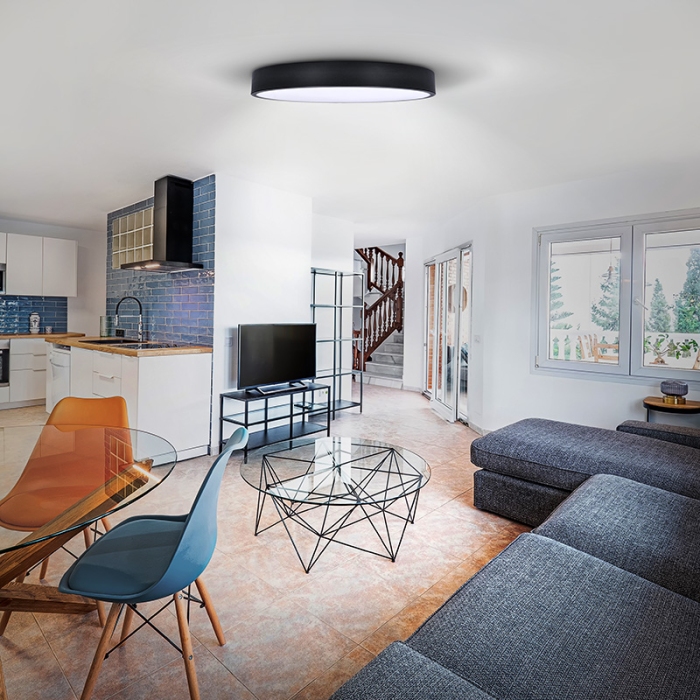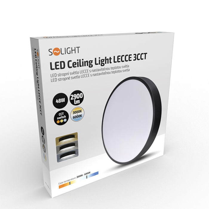 Moderné stropné LED osvetlenie je ideálnou voľbou pre tých, ktorí hľadajú efektívne a prispôsobiteľné riešenie pre osvetlenie interiéru. Vďaka špeciálnemu LED zdroju s prepínačom je možné jednoducho nastaviť teplotu svetla na 3000 K, 4000 K alebo 6000 K, čo umožňuje voliť medzi teplou, neutrálnou a studenou bielou podľa aktuálnej nálady alebo potrieb priestoru. Svetelný tok dosahuje až 2900 lm pri 3000 K, 2800 lm pri 4000 K a 2700 lm pri 6000 K, čo zaručuje dostatočné osvetlenie aj väčších miestností. Uhol svietenia 120° poskytuje rovnomerné rozloženie svetla po celej ploche miestnosti, zatiaľ čo vysoký index podania farieb Ra >80 garantuje verné zobrazenie farieb.