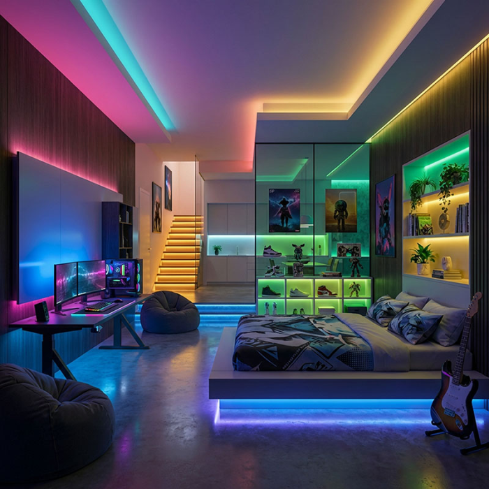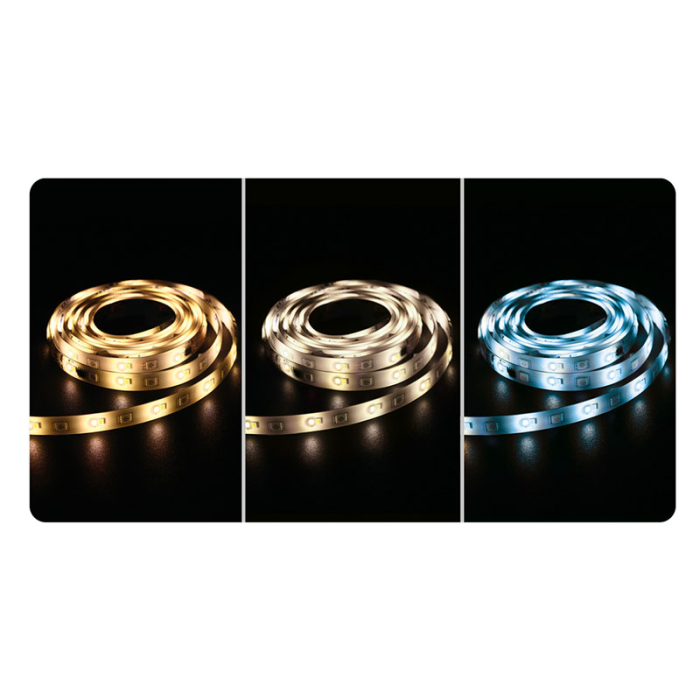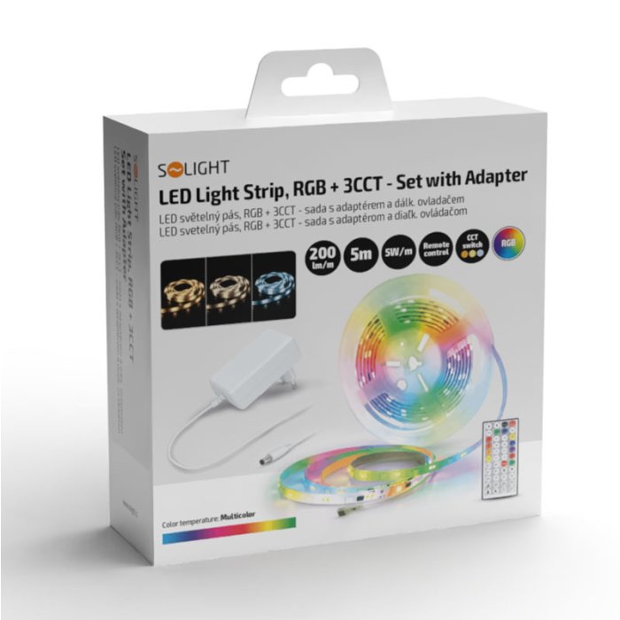 Táto sada LED pásika ponúka jedinečnú kombináciu RGB diód pre farebné osvetlenie a CCT diód pre nastavenie teplej, neutrálnej alebo studenej bielej farby svetla. Vďaka diaľkovému ovládaču môžete jednoducho prepínať medzi rôznymi farebnými režimami, nastavovať efekty stmievania a voliť teplotu svetla podľa aktuálnej nálady alebo potreby. LED pásik je vysoko flexibilný, ľahko sa prispôsobí rôznym tvarom a povrchom a možno ho skrátiť na požadovanú dĺžku. Na zadnej strane je opatrený kvalitnou obojstrannou samolepiacou 3M páskou, ktorá zaisťuje pevné uchytenie na väčšine povrchov.