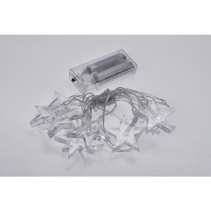 Tento dekoratívny svetelný reťaz s motívom hviezd je ideálnou voľbou na vytvorenie príjemnej a hrejivej atmosféry v interiéri. Desať LED diód v teplej bielej (žltej) farbe rozmiestnených na transparentnom kábli krásne rozžiari každý priestor, či už ho použijete na slávnostnú výzdobu, do detskej izby alebo ako jemné osvetlenie na večerný relax. Vďaka vzdialenosti 15 cm medzi jednotlivými diódami a celkovej dĺžke osvetlenej časti 1,5 m môžete reťaz jednoducho umiestniť podľa svojich predstáv.