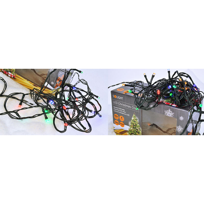 Solight LED vonkajšia vánočná reťaz, 200 LED, 20m, prívod 5m, 8 funkcií, časovač, IP44, viacfarebný