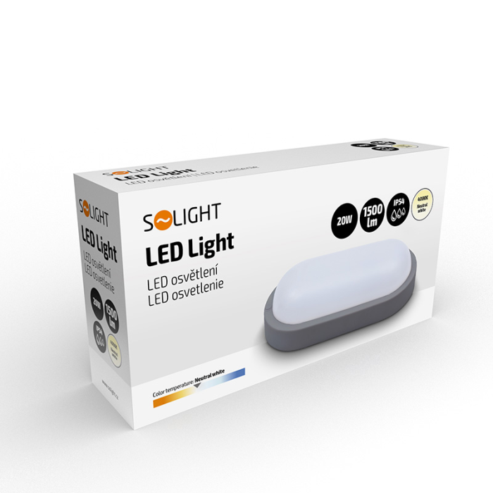 Solight LED vonkajšie osvetlenie oválne, 20W, 1500lm, 4000K, IP54, 26cm, sivá farba