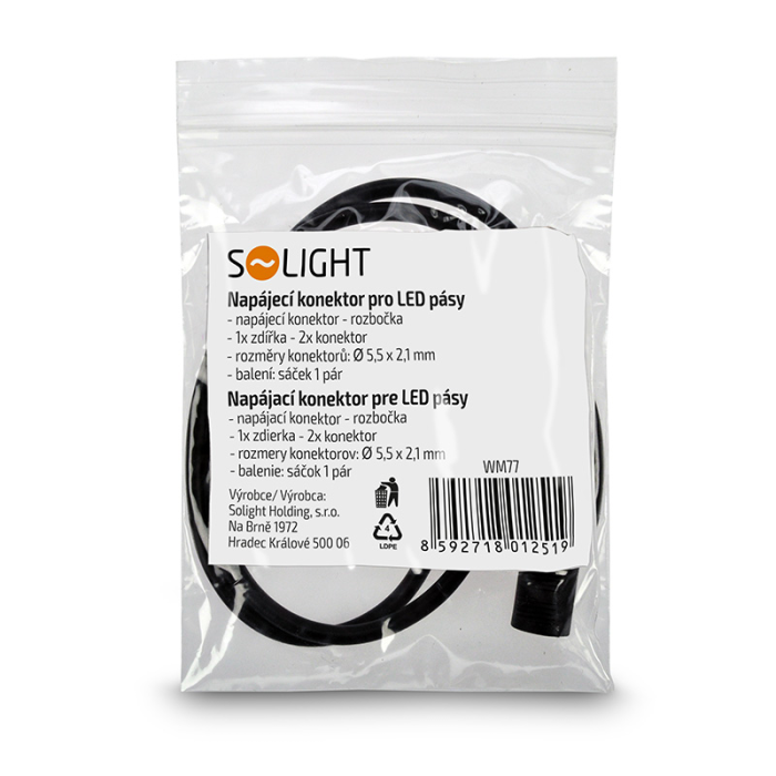 Rozmery konektorov 5,5 mm x 2,1 mm zabezpečujú kompatibilitu s väčšinou bežne používaných napájacích adaptérov a zariadení. Rozbočka je dodávaná v praktickom balení – sáčok obsahuje 1 pár, čo umožňuje okamžité použitie alebo jednoduché uloženie do zásoby. Vďaka kompaktným rozmerom a jednoduchému dizajnu je manipulácia s rozbočkou veľmi pohodlná a jej inštalácia zaberie len niekoľko sekúnd.