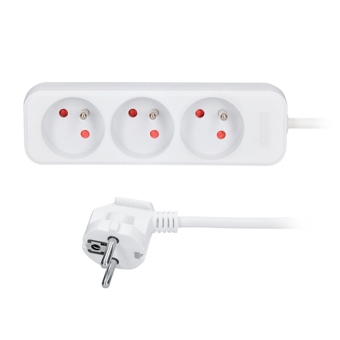 Praktický biely predlžovací kábel s dĺžkou 10 metrov a tromi zásuvkami umožní priviesť elektrickú energiu tam, kde nie je k dispozícii pevná zásuvka. Ideálne pre domáce aj kancelárske využitie.