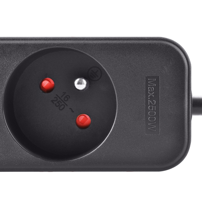 Prívod je navrhnutý pre maximálnu záťaž 2300 W, tzn. prúdové zaťaženie 10 A pri napätí v sieti 230 V~. Zaisťuje stabilný prenos energie pre bežné elektrospotrebiče. Zásuvky sú vybavené detskými poistkami pre maximálnu bezpečnosť.