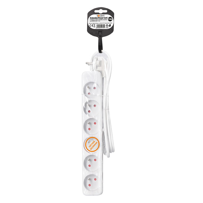 Praktický biely predlžovací kábel s dĺžkou 1,5 metra a šiestimi zásuvkami umožní priviesť elektrickú energiu tam, kde nie je k dispozícii pevná zásuvka. Ideálne pre domáce aj kancelárske využitie.
