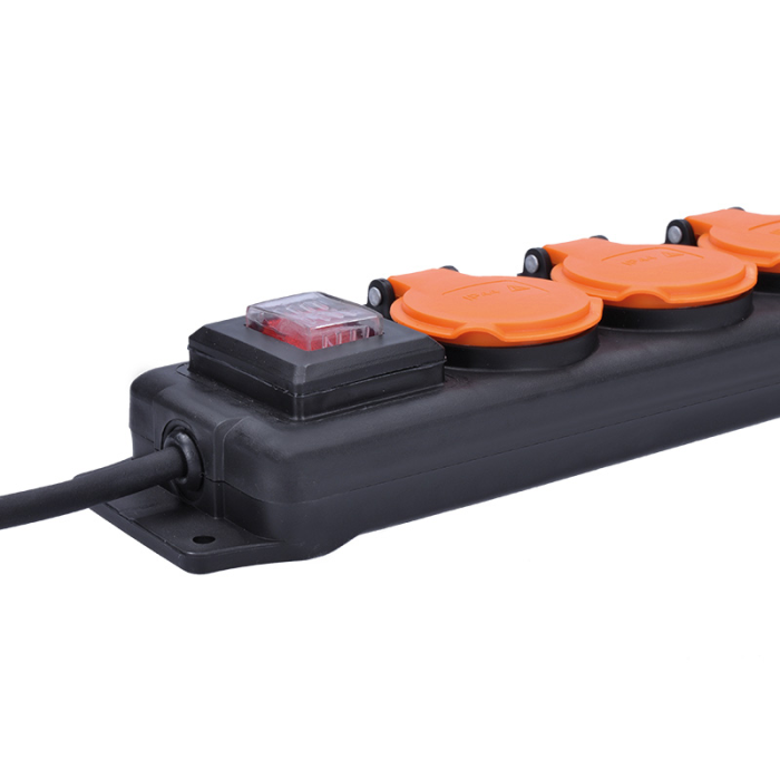 Odolný gumový kábel je určený na stredné mechanické zaťaženie a použitie v exteriéri. Zásuvky sú opatrené samozatváracími ochrannými viečkami proti vlhkosti a prachu. Podsvietený vypínač s gumovým krytom umožňuje bezpečné a rýchle ovládanie pripojených zariadení aj v tmavom, vlhkom a prašnom prostredí.