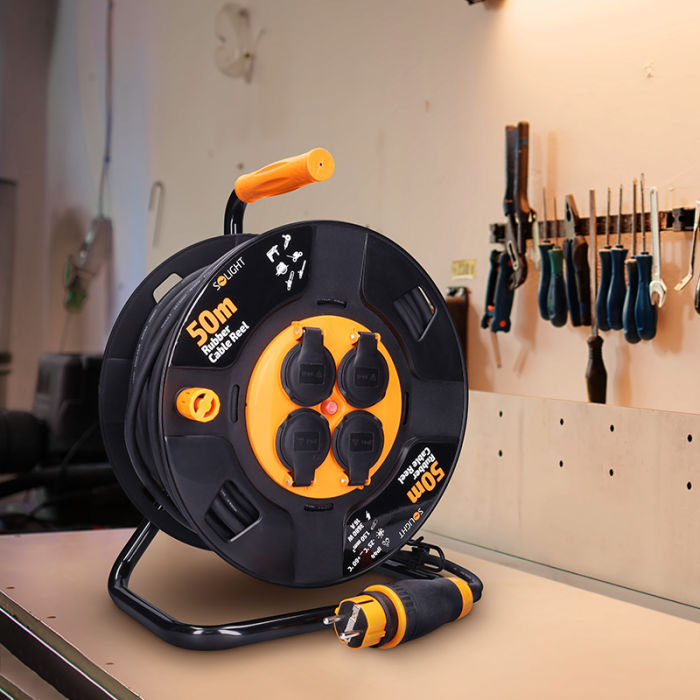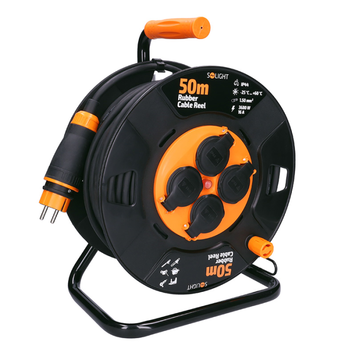 Predlžovací kábel na navíjacom bubne s dĺžkou 50 metrov a štvormi zásuvkami je ideálny na použitie vonku, na stavbách alebo v dielňach. Gumový kábel zaisťuje odolnosť proti poveternostným podmienkam a mechanickému namáhaniu. Produkt je navrhnutý na bezpečné a spoľahlivé pripojenie stavebných, záhradných i menej náročných priemyselných zariadení.