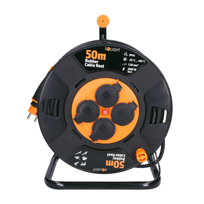 Maximálna záťaž 3680 W (16 A pri 230 V~) umožňuje bezpečnú prevádzku väčšiny vonkajších a profesionálnych zariadení. Ergonomické madlo uľahčuje prenášanie a rýchle navinutie kábla. Ideálny pomocník na profesionálne stavebné práce, údržbu alebo náročné hobby projekty.