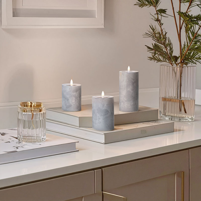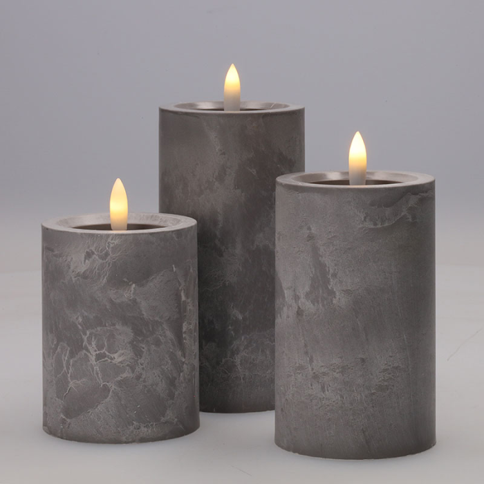 Vneste do svojho interiéru príjemné teplé svetlo s touto sadou troch LED sviečok, ktoré verne imitujú prirodzene blikajúci plameň. Elegantný dekor sivého mramoru dodáva sviečkam moderný vzhľad, ktorý sa ľahko zladí s akýmkoľvek štýlom zariadenia. Každá sviečka je vybavená samostatnou LED diódou s teplým bielym svetlom, ktoré navodzuje pocit pohody a pokoja bez rizika otvoreného ohňa. Vďaka plastovému prevedeniu sú sviečky bezpečné a vhodné aj do domácností s deťmi alebo domácimi miláčikmi.