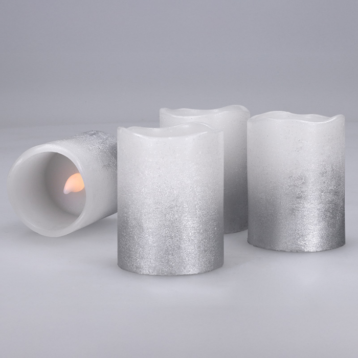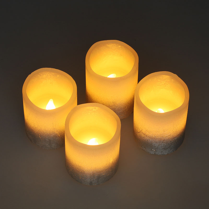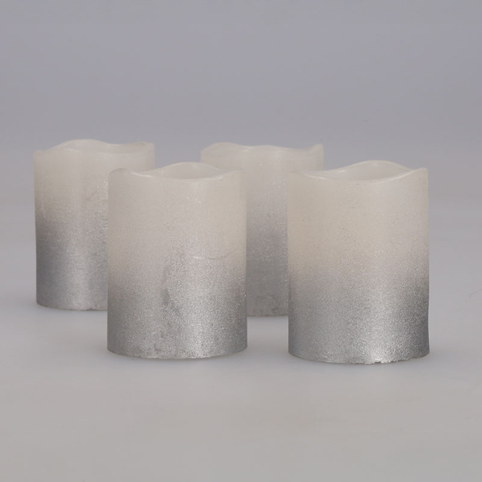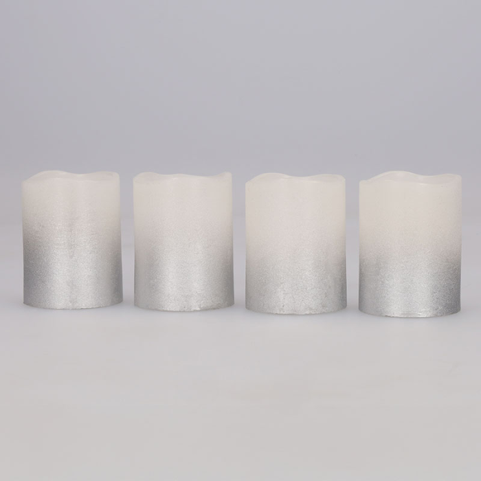 Vneste do svojho interiéru príjemné teplé svetlo s touto sadou štyroch LED sviečok, ktoré verne imitujú prirodzene blikajúci plameň. Každá sviečka je vyrobená z kombinácie pravého vosku a plastu, čo zaisťuje autentický vzhľad aj príjemný pocit na dotyk. Elegantné strieborné a biele prevedenie ľahko zladíte s akýmkoľvek štýlom zariadenia, či už je váš domov moderný alebo tradičný. Vďaka kompaktným rozmerom 5 x 6,5 cm sa sviečky hodia na stôl, poličku aj do dekoratívnych aranžmánov.