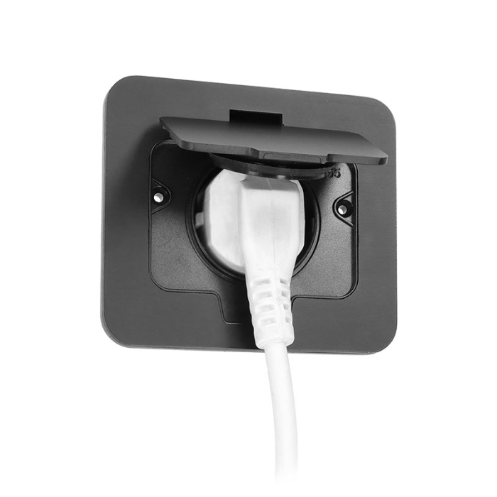 Vrchný kryt zásuvky je vyrobený z odolnej zinkovej zliatiny, ktorá zaisťuje pevnosť a zároveň ochranu proti korózii. Na povrchu nie sú viditeľné žiadne skrutky – montážne otvory zostávajú skryté pod viečkom. Vďaka tomu pôsobí zásuvka elegantne a profesionálne a zároveň sa ľahko čistí.