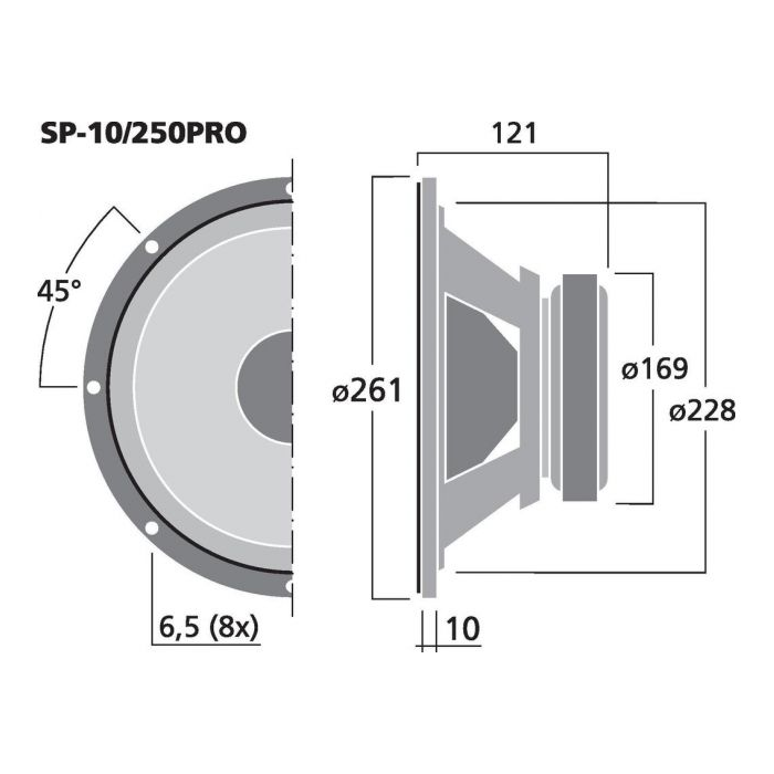 PA Basový reproduktor, subwoofer, 250 W, 8 Ω